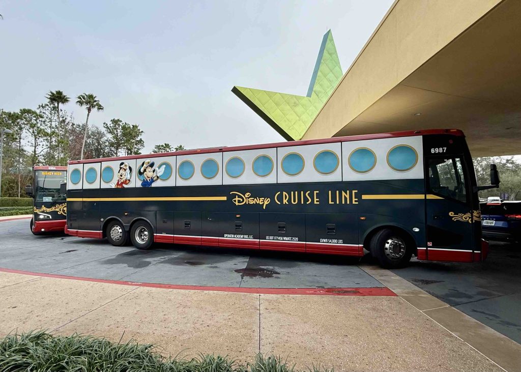 WDWの直営リゾートから、ディズニークルーズが発着する港(ポートカナベラル)までは、事前予約制のクルーズシャトルバスが運行しています。