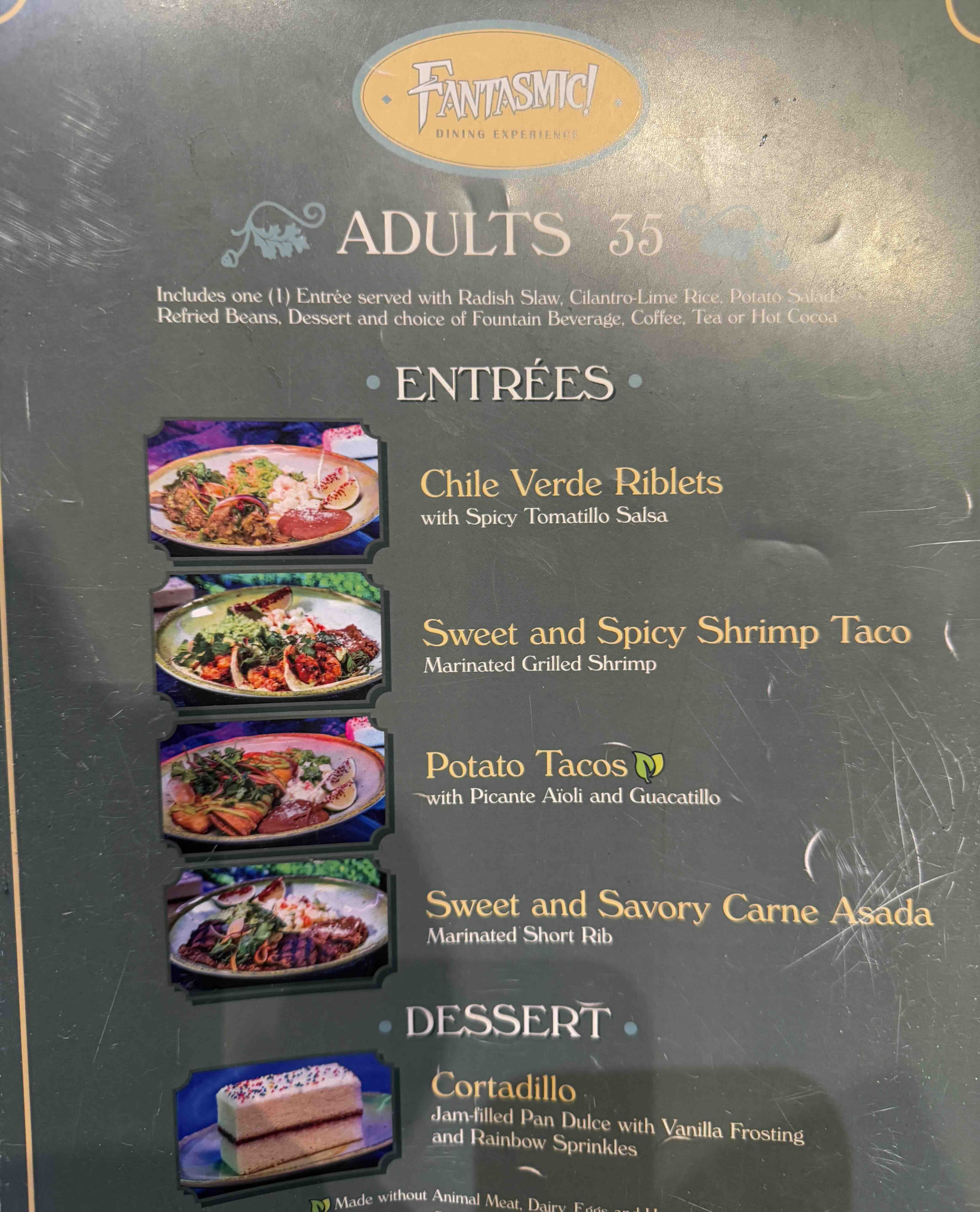 ランチョ・デル・ゾカロでは、キャストさんにファンタズミック!ダイニングパッケージの利用であると伝えると専用のメニューを渡されました。