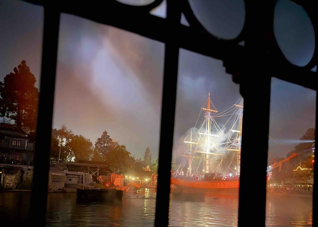 それでも、目の前で繰り広げられる帆船コロンビア号での戦いや、フィナーレで目の前を通る蒸気船マーク・トウェイン号が大好きで、アナハイムに来るたびに観賞エリアで見たいな~と思ってしまいます。