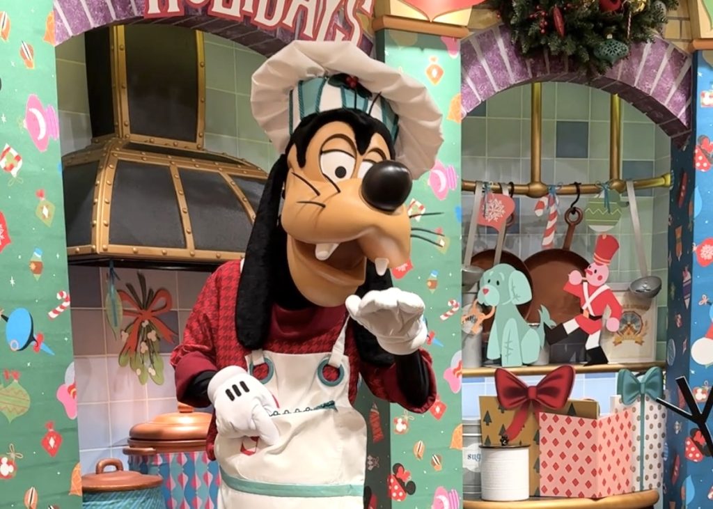 シーズナルダイニング開催中は、季節感溢れる衣装のキャラクターたちに会えるグーフィーズキッチンでした!