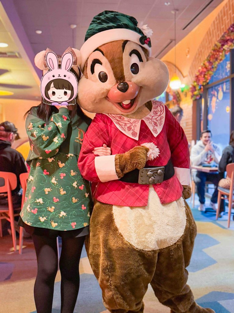 ホリデー期間だったため、前年(2023年)のホリデー衣装のキャラクターと会いながら、美味しいビュッフェ料理をいただきました♡