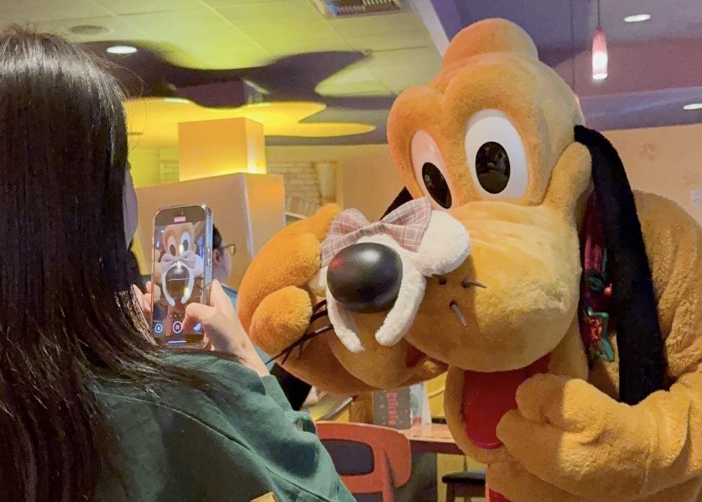 レストランの名前になっているグーフィーを始め、ミニー、プルート、チップ、デールに会えました。