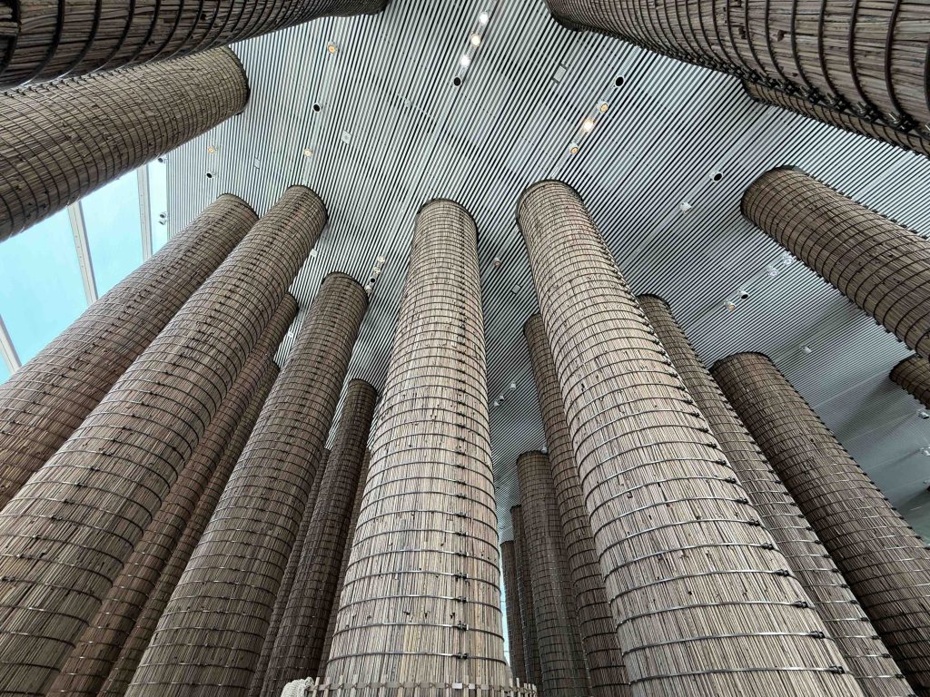 ナツメヤシの柱が特徴的なパビリオンです。(人が多いので、見上げるアングルの写真です)