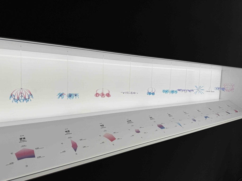 写真はプラントエリアです。鏡を効果的に使ったり、微生物をイメージした3Dプリントのモニュメントが展示されていました。