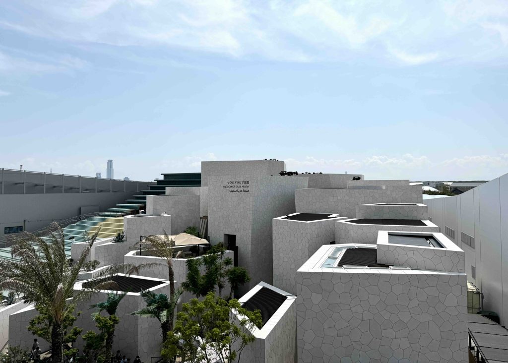 外観が気になっていたサウジアラビアパビリオン。路地を歩きながら、独立したいくつかの展示室を見て回りました。映像が中心でした。