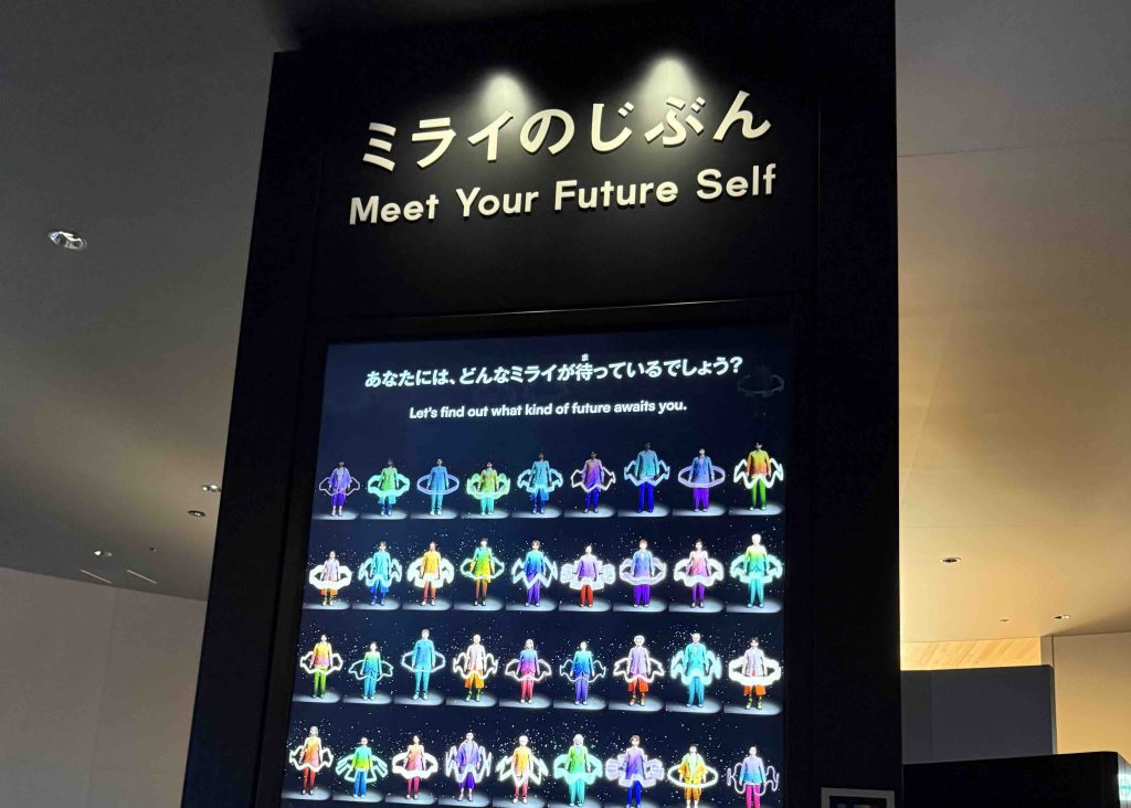 カラダ測定ポッドで現在のじぶんの測定をして、次のエリアでミライのじぶん(25年後)に会うことができます。これを楽しみにしていました!
