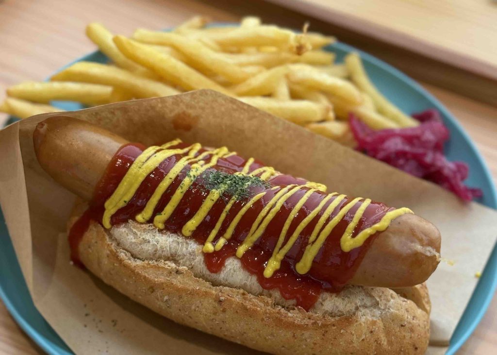 涼みに入ったはずが、ちょうど陽が当たる席だったのは残念でしたが、座ってホットドッグを食べながら休憩です。