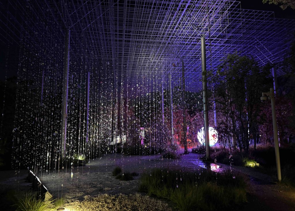 夜の大屋根リングから眺める、ライトアップされたリングとパビリオンは美しかったです…!夜は気温も下がって歩きやすかったです。