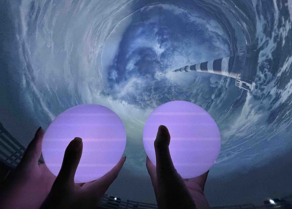 一人ずつオーブを持ち、展示を見ながらエネルギーを貯めていきます。国土の1/4が海抜0m以下の水と共生するオランダだからこその、水をテーマにした展示でした。